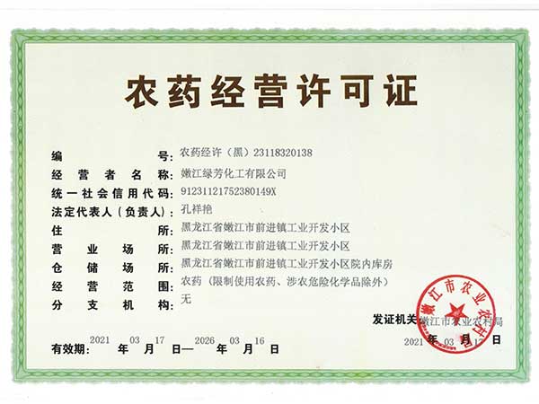 about 走進綠芳 您現在的位置:網站首頁 > 走進綠芳 > 資質榮譽 公司簡介 企業文化 品牌優勢 資質榮譽 發展歷程 合作伙伴 農藥生產許可證 農藥經營許可證 營業執照 曾獲得農藥十大省市支農排頭兵 農民信賴農資企業 曾獲得農藥企業競爭力100強稱號 共21條記錄 當前為第1頁/共4頁上一頁1234下一頁